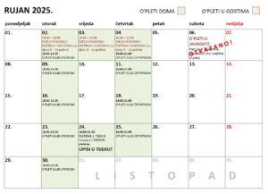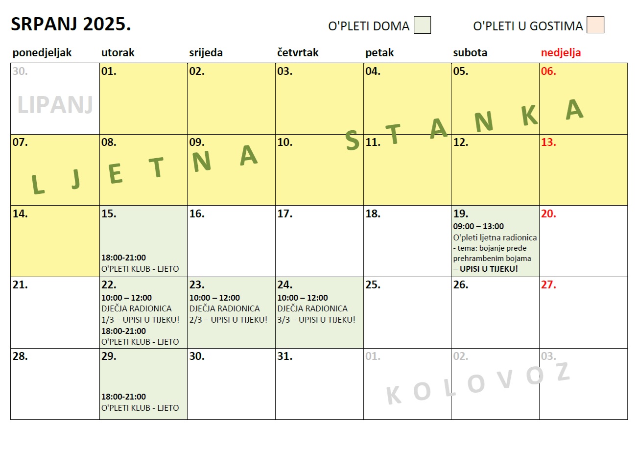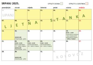RASPORED ZA SRPANJ/KOLOVOZ 2016.