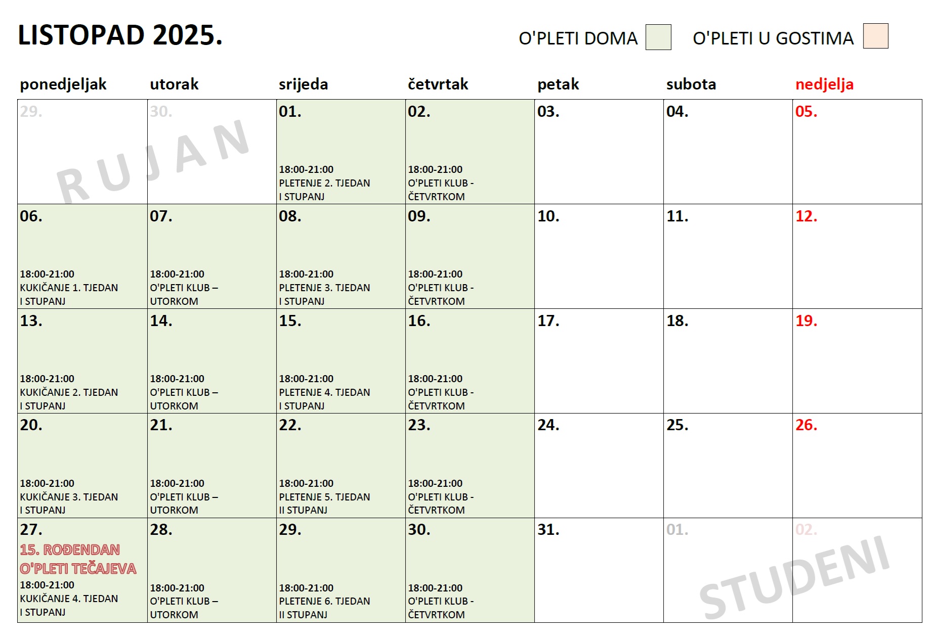 srijeda - I stupanj tečaja pletenja od 27.11.