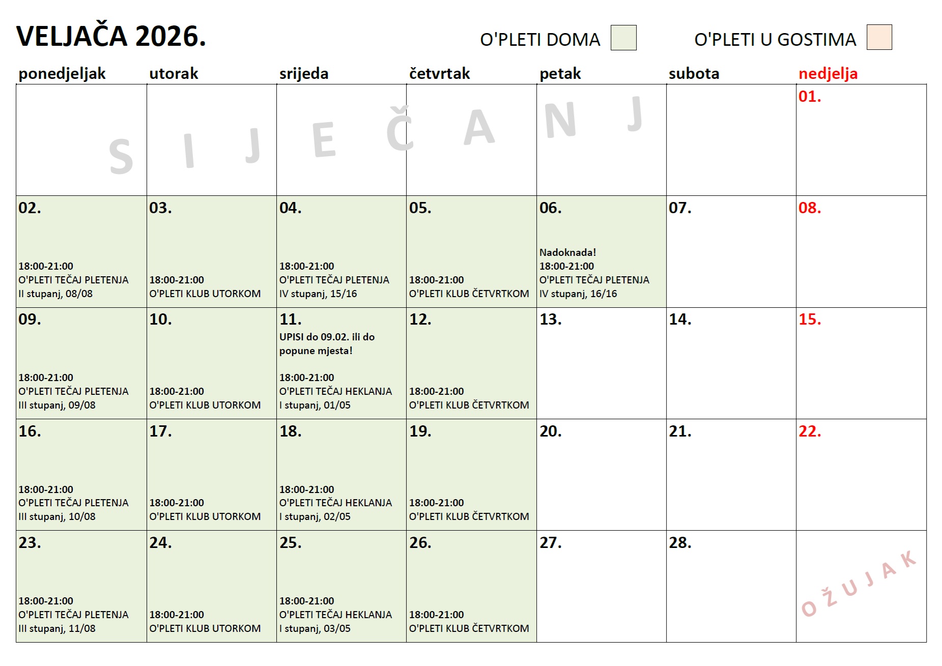 RASPORED ZA VELJAČU 2026.