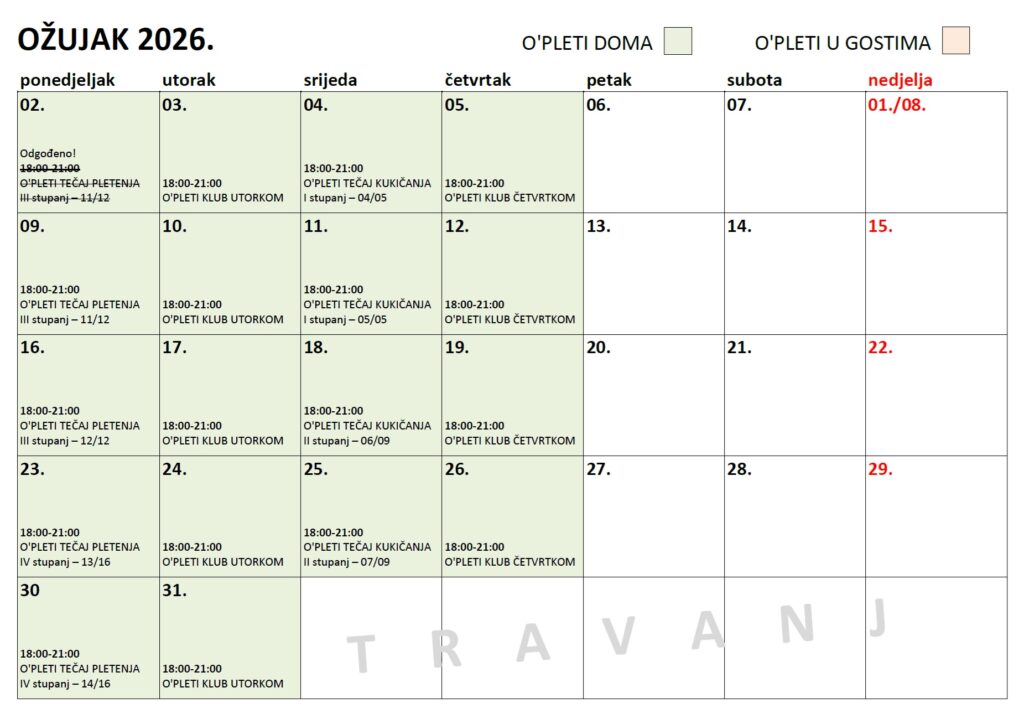 U ožujku tečajevi se održavaju prema sljedećem rasporedu: