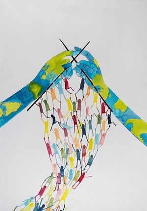 Izlog rekonstruira Zemlju prikazanu kao ruke koje pletu ljude povezujući ih u pletivo života čiju snagu čini naša neraskidiva povezanost kako međusobno, tako i s plavo-zelenom kuglicom koju dijelimo.