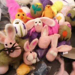 16.03.2024. su održane radionice filcanja pod vodstvom Diane Botice, gošće iz Splita. U jutarnjem terminu smo mogle naučiti osnove suhog filcanja i izraditi zeca ili pile, te ufilcati stiropornu pisanicu.
