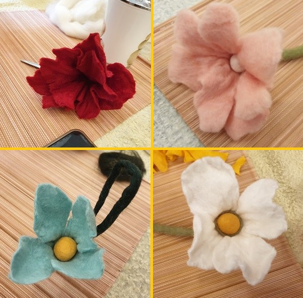 Poslijepodne smo izradile cvjetove u tehnici mokrog filcanja, te na taj način naučile filcanje plohe, kuglice i valjka.